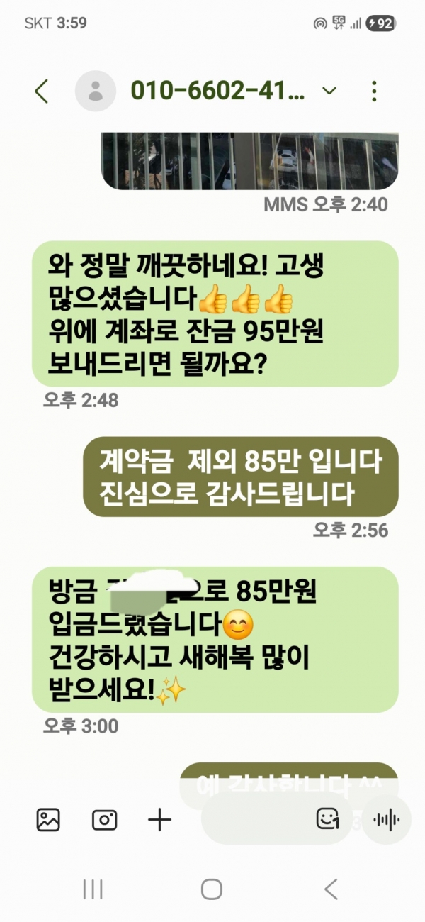 문자후기 작성자 더홈케어구미 | 작성일26-02-09 16:41 관련링크 다음글 목록 글쓰기 본문 봉곡동 뜨랜채 5단지 고객님이 보내주신 문자입니 다음글 문자후기 댓글목록 등록된 댓글이 없습니다. 다음글 목록 글쓰기